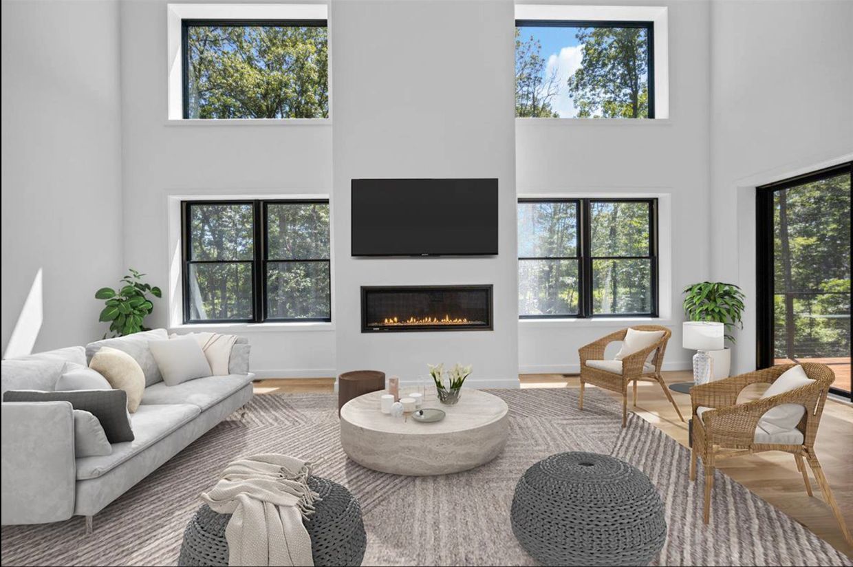 The perfect combination of contemporary design, energy efficiency and upstate living. This home radiates a special feeling from the moment you pull up the driveway. Thoughtfully designed from the ground up this new home was built with insulated concrete form construction, a metal roof, top of the line windows and a healthy air circulation system; making it resilient, safe, eco friendly and quiet. Step inside to an organized front hall ready for your hiking boots and outdoor enthusiast's necessities. The large garage, with Epoxy floor, is sure to impress with a full glass door and an abundance of space for your home gym, workshop or studio. Down the polished concrete hall is a bright bedroom with its own full bathroom and large closet. Head upstairs and prepare to be amazed. A modern open concept kitchen, dining area and living room are flooded with natural light and soaring ceilings. The kitchen is a true entertaining dream with opulent white quartz waterfall island, custom cabinets and so much attention to detail. Beautiful white oak floors, modern wall mounted fireplace and a 2nd level deck are just a few of the great features this home offers. A handsome half bath is located next to the pantry and large laundry room. The primary bedroom is accented with gorgeous wood ceilings and modern hanging light. Two large walkin closets were finished with built-ins. The master ensuite exudes luxury with floor to ceiling marble tile, soaking tub, large glass shower and double vanity. A final 3rd bedroom on the 2nd floor also has it's own ensuite bathroom and large closet.. Outside enjoy star gazing around the firepit on your 1.7 acres. Minutes from New Paltz, Kingston, renowned hiking trails, rivers and mountains you will never run out of places to explore. This home is a true dream.